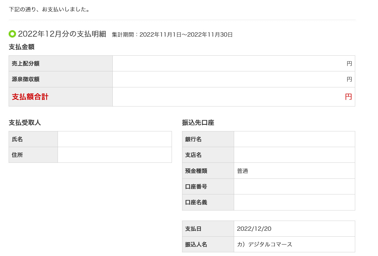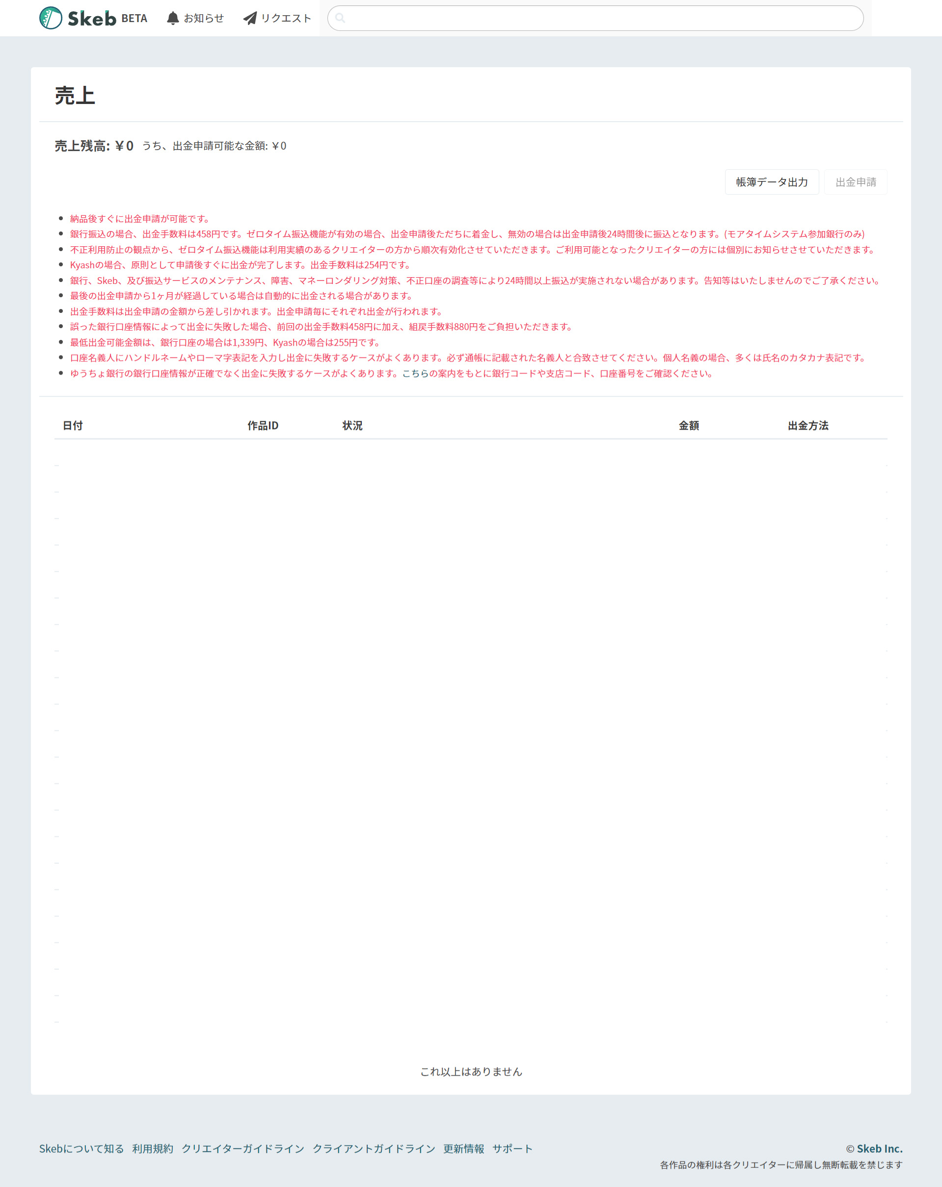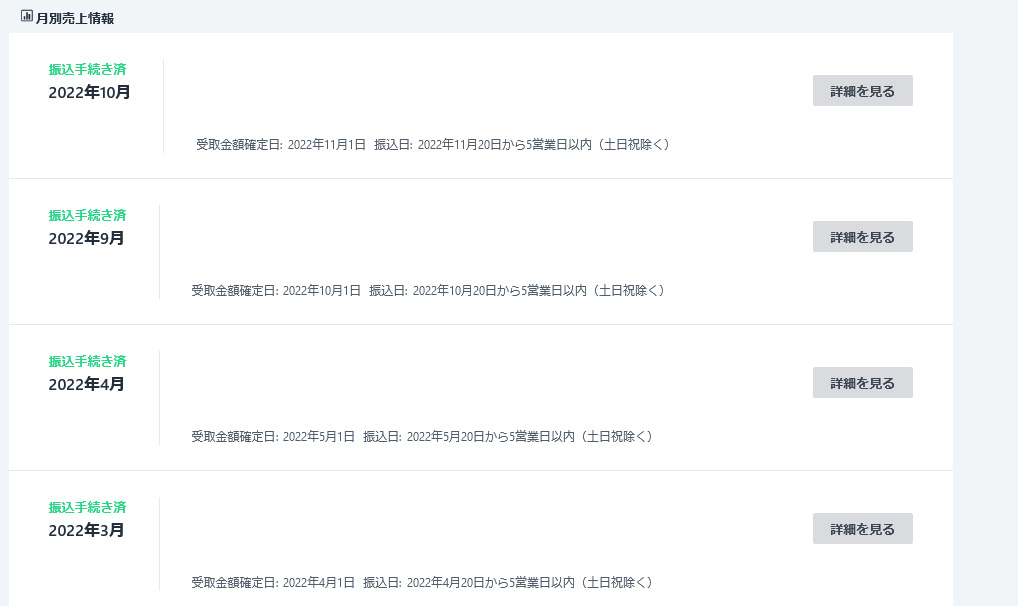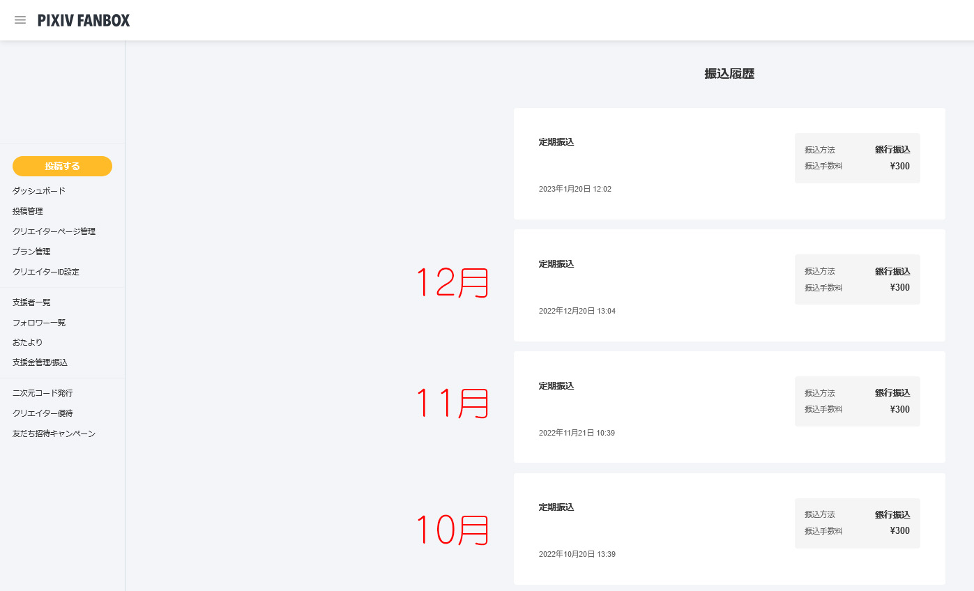 FANBOXやBOOTHなどサイト内でしか売上が確認できない場合は、月の売上(支援金)と手数料などが分かるページのスクリーンショットを取ってデータ化します。(資料画像:BOOTH/PIXIV FANBOX/Skeb)その場合もどこのいつの売上か分かる名前を付けて保存しましょう。(例:202306FANBOX.png など)