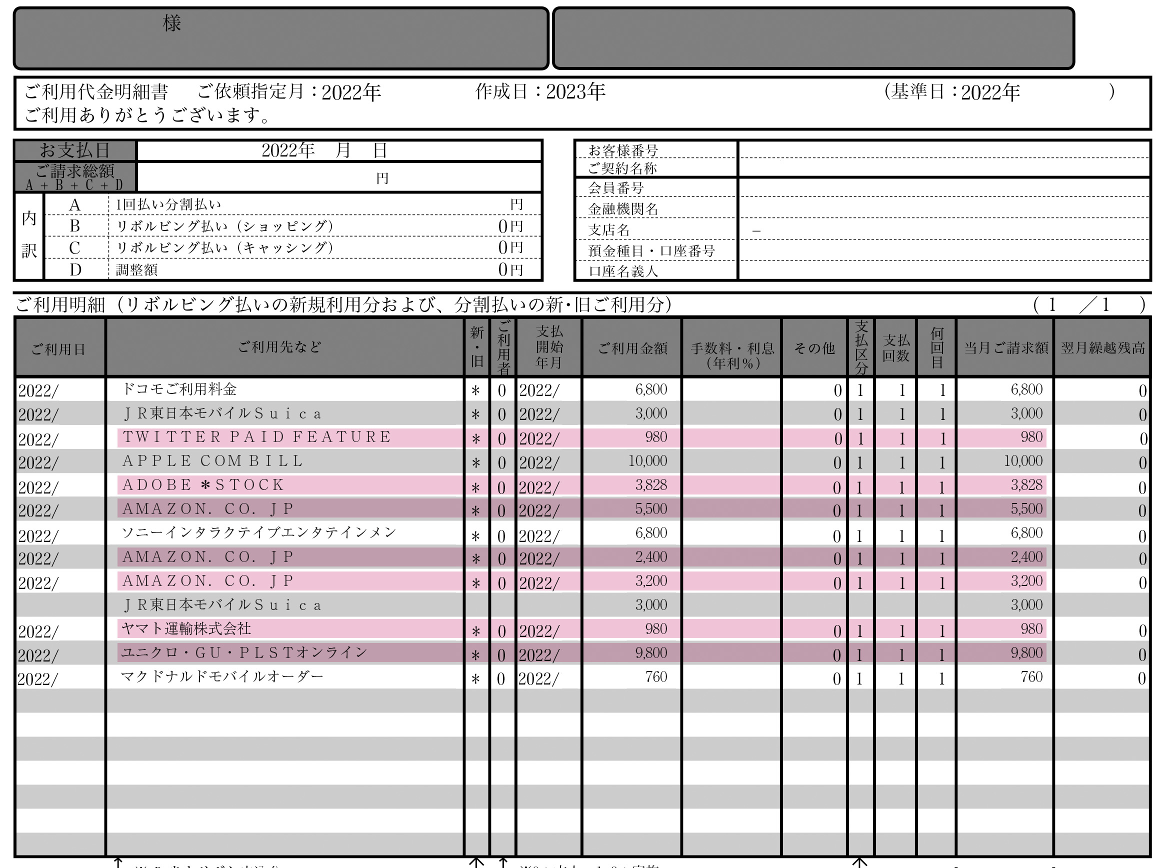 ※なお、以下で紹介している資料画像は、サンプル用に白抜き・モザイク処理をしています。実際は明細等が書かれているので、それがよく見えるようにしてご提出ください。