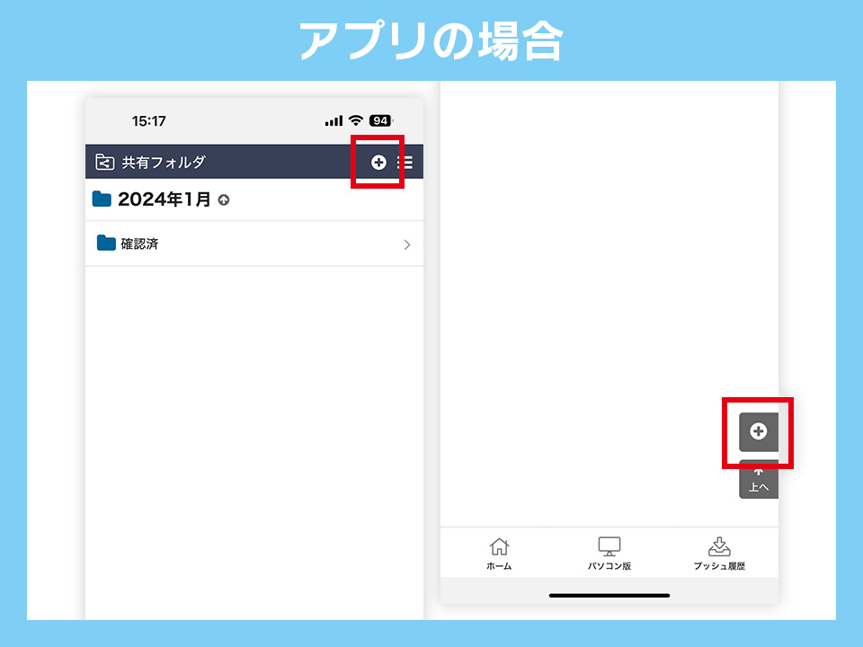 ※この際、パソコンブラウザ版の場合のみ、ドラッグアンドドロップでアップロードするデータを選択することも可能です。