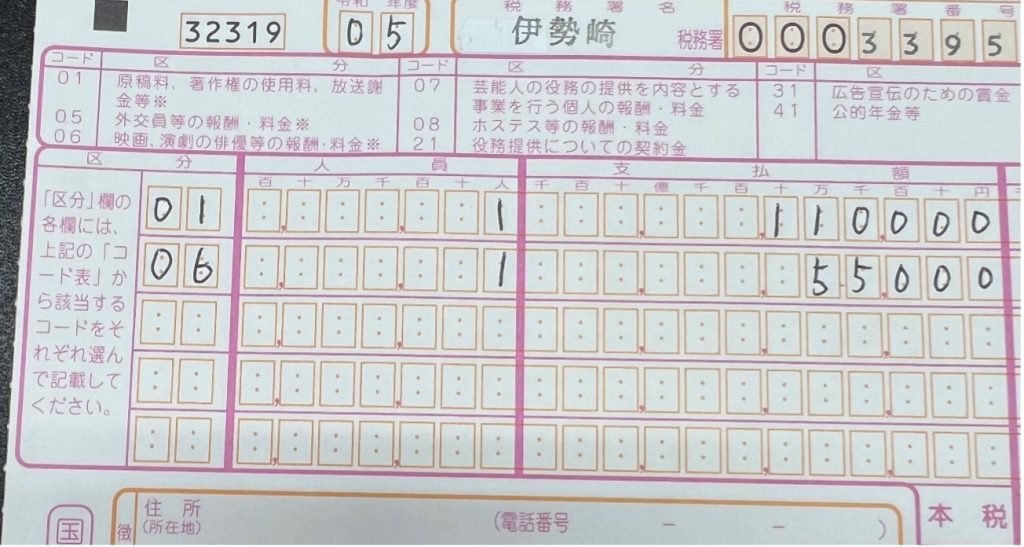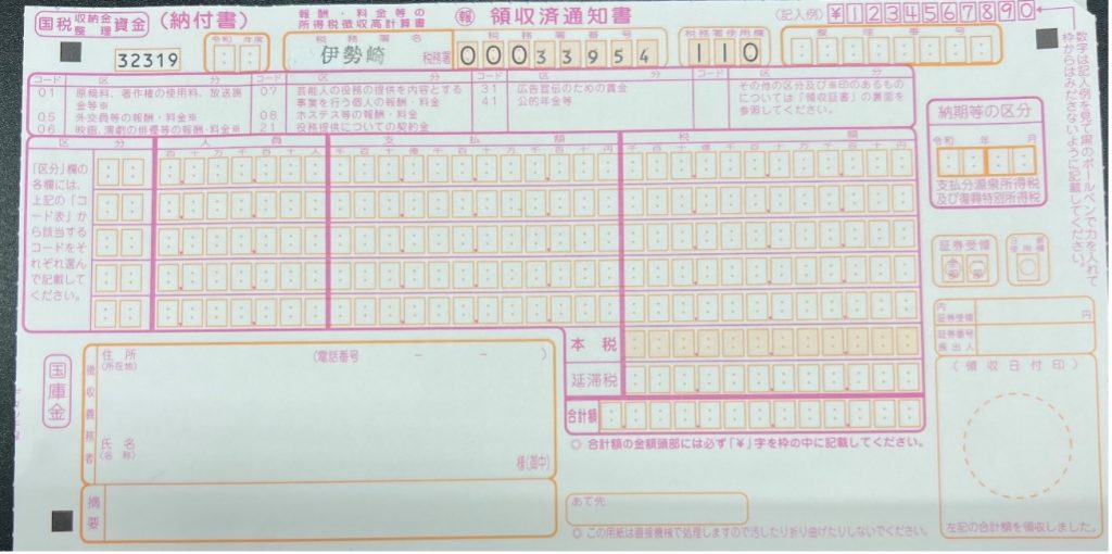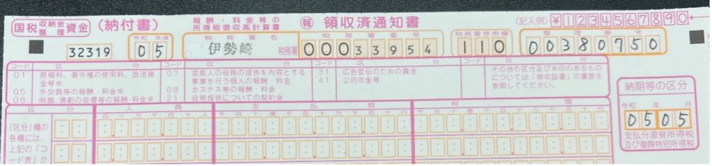 「青色事業専従者に給与を払う場合その2」の納付書の書き方とほとんど同じですが、報酬や料金の納付書は専用のものがあるのでそちらで納付します。