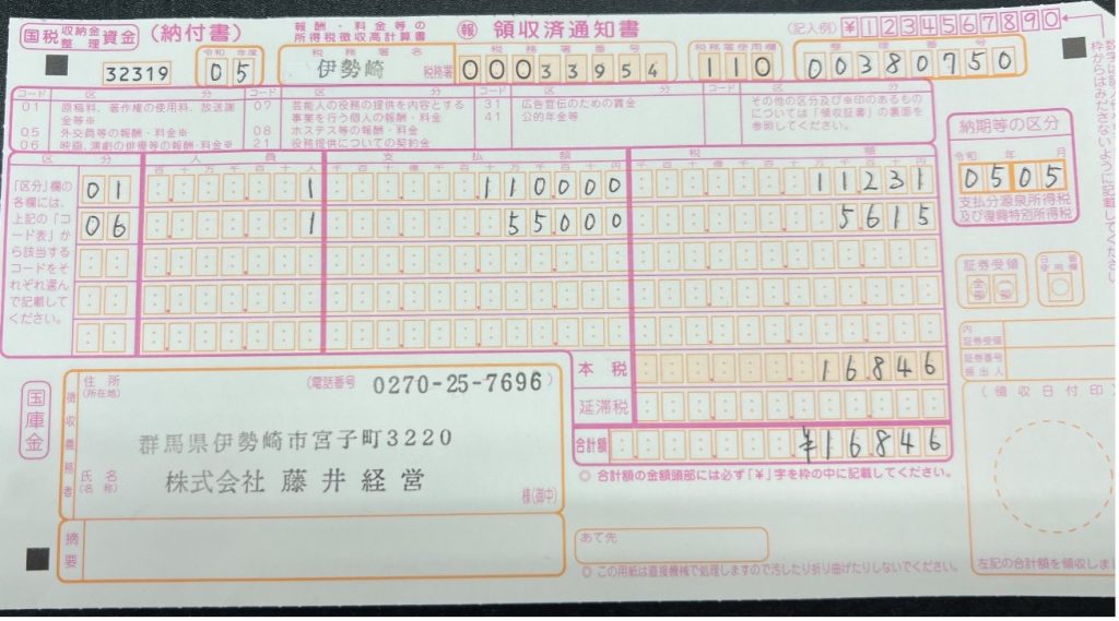 ここまで記入できたら、金融機関に行って納付すれば終了です。